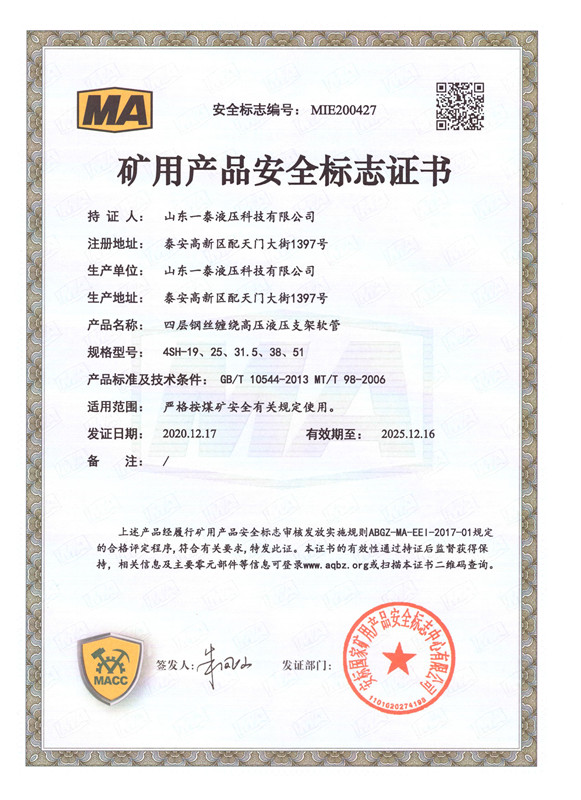 山東一泰液壓科技有限公司,坐落于山東省泰安市國家高新技術產業(yè)開發(fā)區(qū)配天門大街1397號,總占地面積6萬6千多平方米,總建筑面積4萬多平方米。公司注冊資金7500萬元,資產值3億元。公司始終專注于超高壓石油鉆探軟管、柔性節(jié)流壓井軟管、井控高壓耐火軟管總成、高端機械軟管、以及礦用液壓管體等配套產品的研發(fā)和生產。產品廣泛用于陸地和海洋石油鉆井、勘探、開采、輸送等領域;同時還為軍用系列、大型船舶系列提供了優(yōu)質產品的供應保障和信任服務。